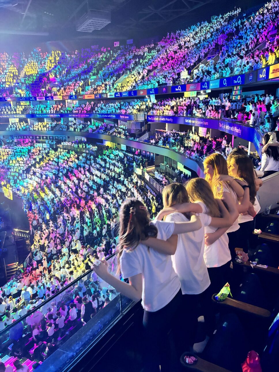 Of course, in true Stockbridge style, we made a real ‘day’ of things with an early coach to London to get us into Greenwich where we topped up on a warm lunch at Pizza Express. This meant we arrived at the O2 in good time for rehearsals to begin but not too early that we were hanging around for ages. We then launched into 4 hours of rehearsals to ensure our performance was perfect and in sync with the other 8600 children before having an extended break from 5pm – 7pm. The lights went off at 7pm, screams rang loudly across the arena before launching into song at 7pm to an audience of all parents, family and friends.